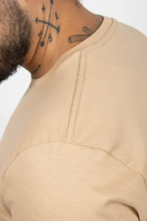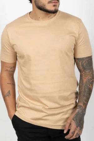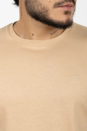 Camiseta Básica de Hombre, Slim Fit Cuello Redondo – 100% Algodón Premium. Caki Claro