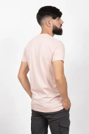 Camiseta Básica de Hombre, Slim Fit Cuello Redondo – 100% Algodón Premium. Rosa Claro