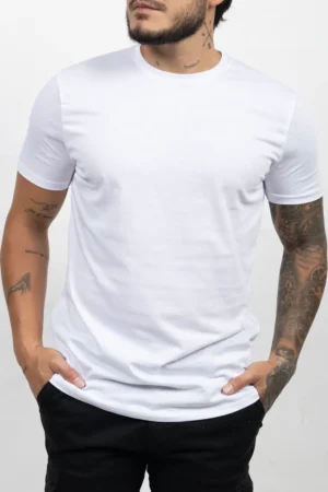 Camiseta Básica de Hombre, 100% Algodón. Blanco