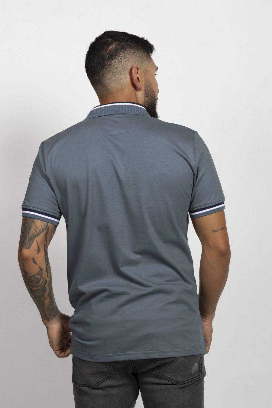 Camiseta de Hombre Tipo Polo, Classic Fit Manga Corta. Cuello Rayas. Azul Petroleo