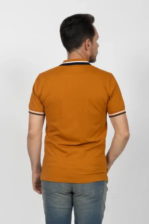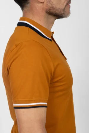 Camiseta de Hombre Tipo Polo, Classic Fit Manga Corta. Cuello Rayas. Naranja jo