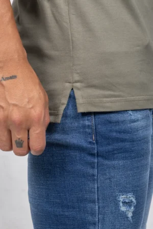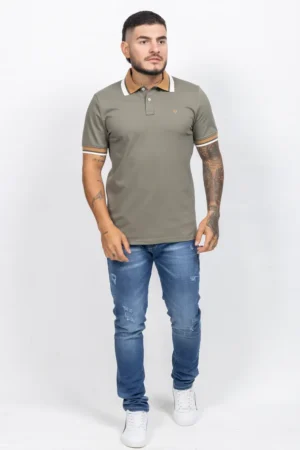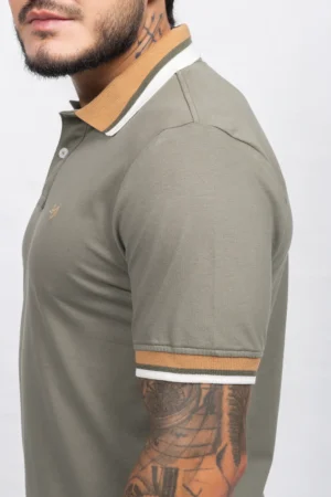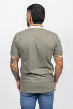 Camiseta de Hombre Tipo Polo, Classic Fit Manga Corta. Cuello Rayas. Verde Militar