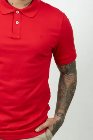 Camiseta de Hombre Tipo Polo, Classic Fit Manga Corta. Rojo