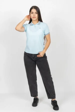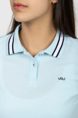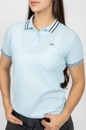 Camiseta Tipo Polo de Dama, 65% poliéster 35% algodón. Azul Claro