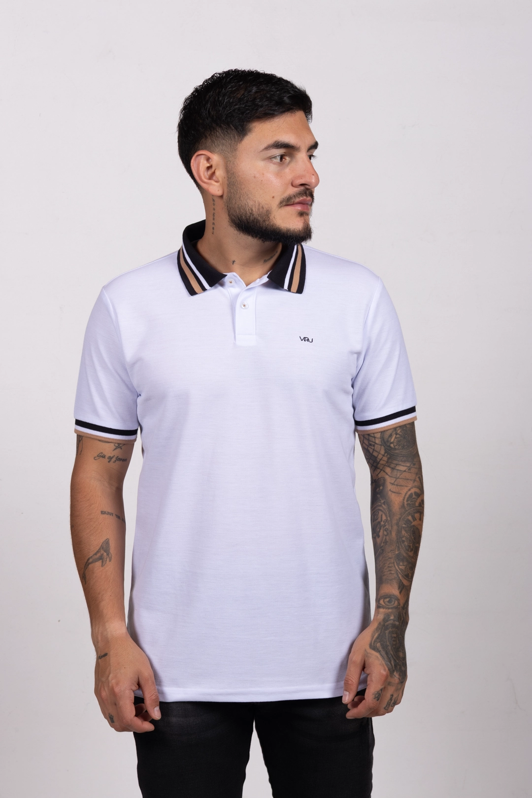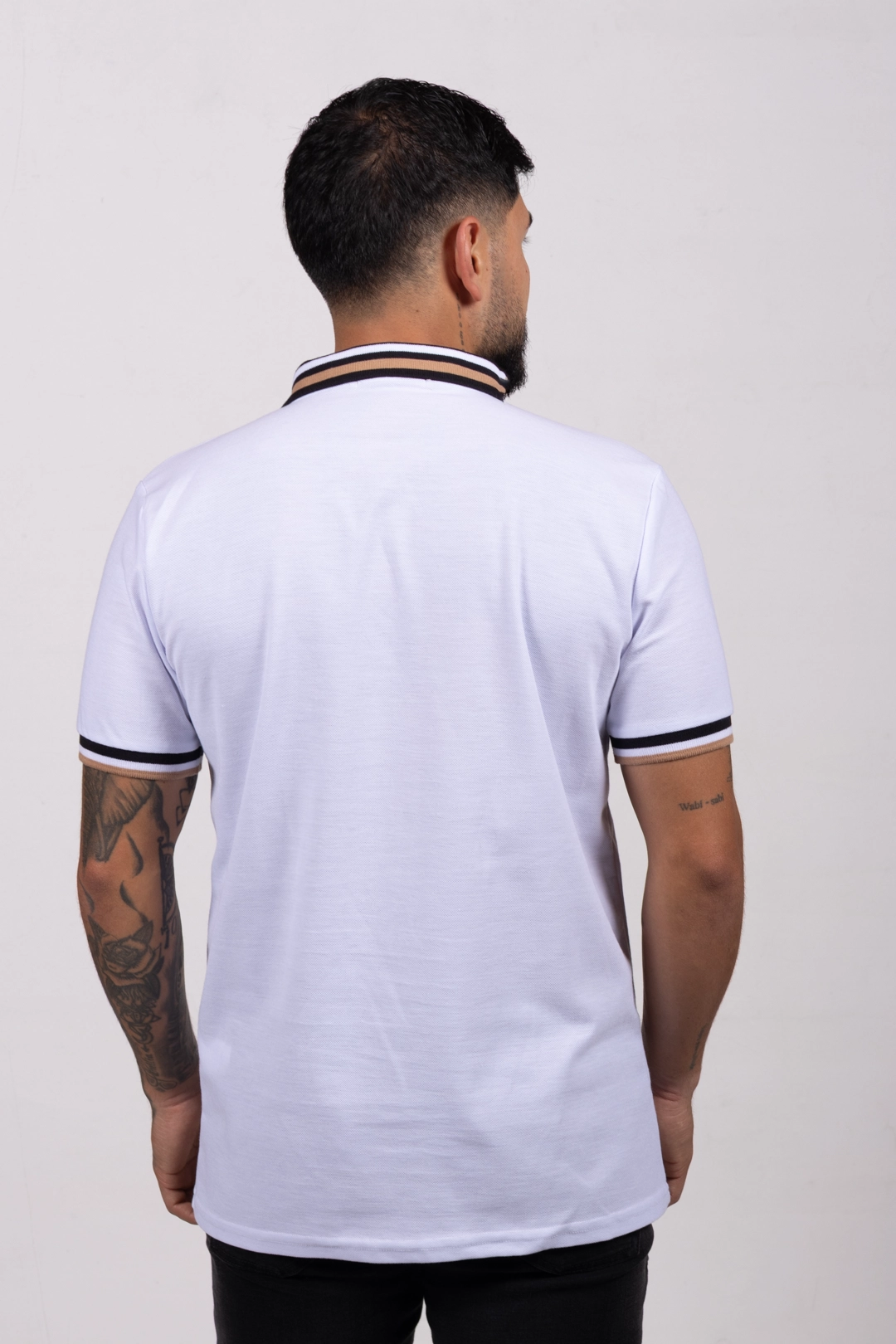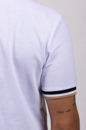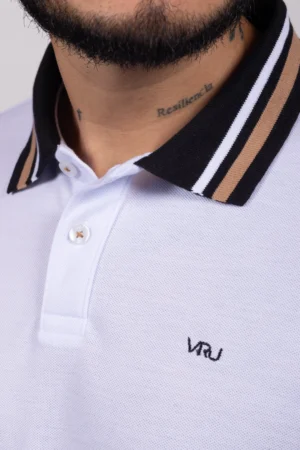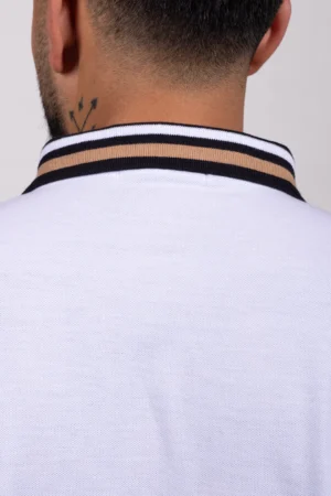 Camiseta Tipo Polo de Hombre, 65% poliéster 35% algodón. Blanco