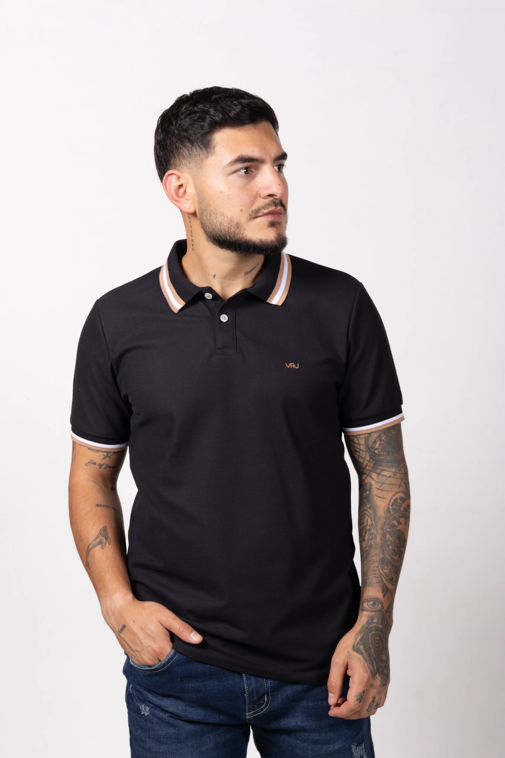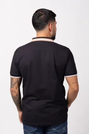 Camiseta Tipo Polo de Hombre, 65% poliéster 35% algodón. Negro
