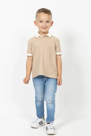 Camiseta Tipo Polo de Niño, 65% poliéster 35% algodón. Arena
